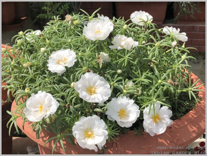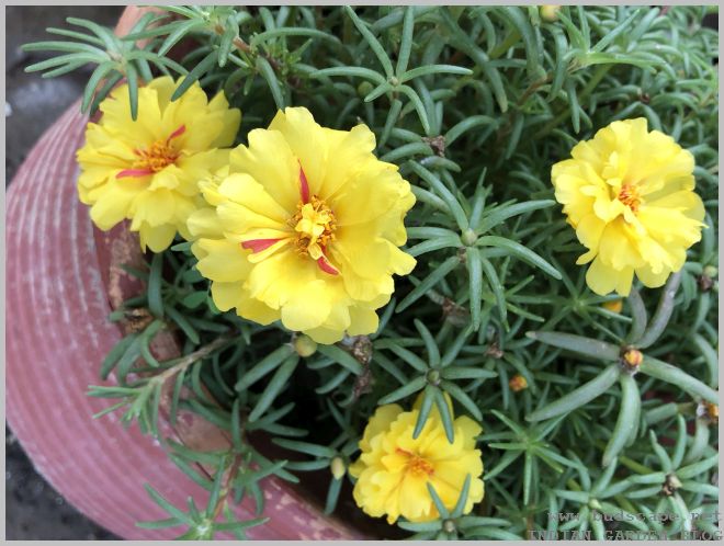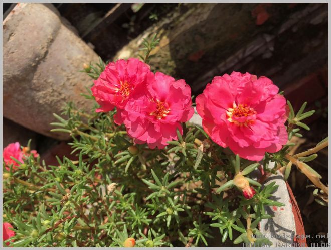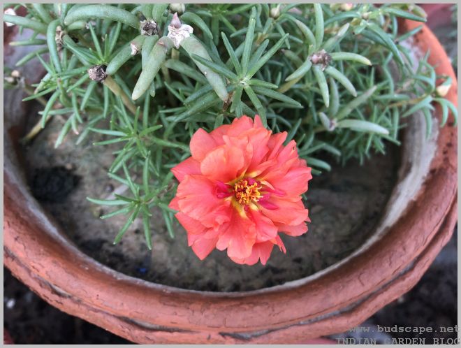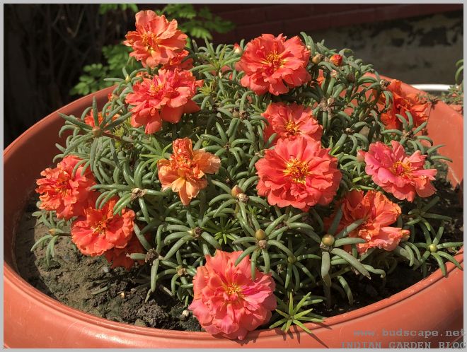 After Spring ends, all Indian gardeners face a similar dilemma, what to do with the so many empty small pots that once held beautiful winter blooms. The solution is sometimes, the simplest & yet the best! I never paid much attention to the humble portulaca until this season. Known as “dopahar khidi” in our local language, i couldn’t resist the rainbow of colors displayed at nurseries this season. It was while planting them that i realized their potential. And thus, answering my own question!