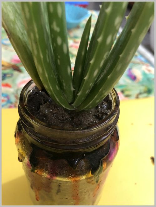 Hence, presenting my Aloe Vera plant growing indoors, in a mason jar 🙂