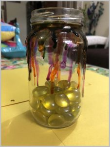 First, I painted a glass jar in the same manner that i painted these tea cups for herbs.
