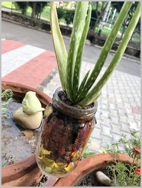 Took a small Aloe Vera plant from the garden. Don’t choose a very big one. It needs space to grow even if slowly.