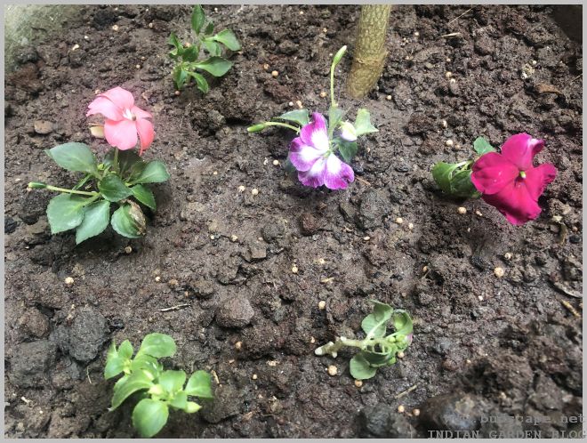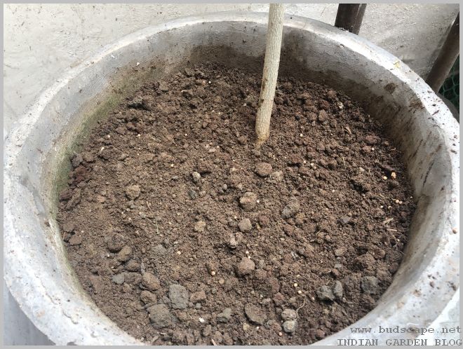 2. Prepare soil in a shaded spot. I chose a large moringa pot kept in a corner. Make sure the soil drains well. Impatiens rot very very easily if kept in wet soil.