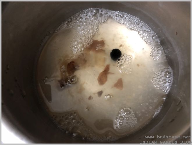 - Boil a Soapnut (Reetha) in 2 cups of water till it softens. Squeeze out the foam.