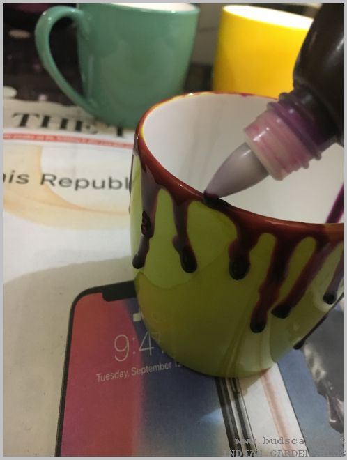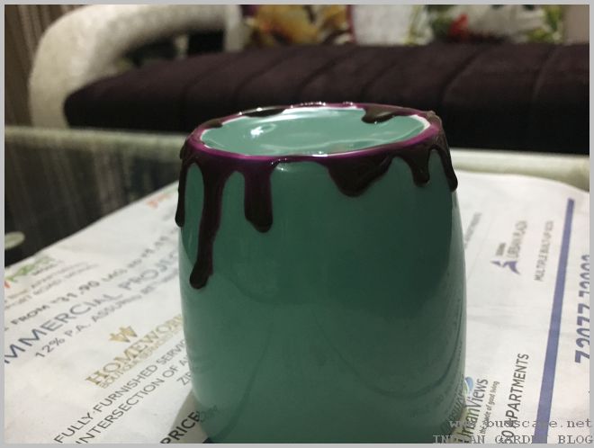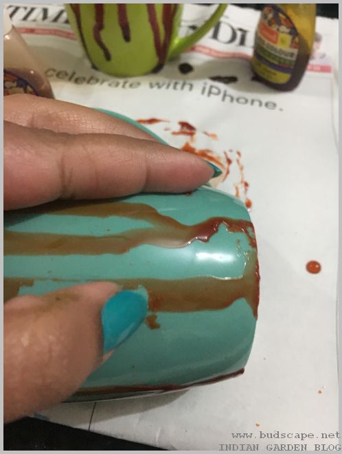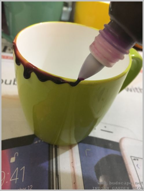 This is so easy that i don’t even know if it needs to be told in steps. So i began by cleaning the cups & taking one contrasting color to pour around the rim. Like this..