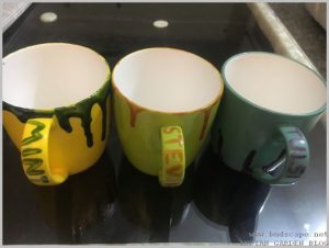 All the supplies i required were some glass colors ( that date wayyy back to 2004.. kudos CAMEL) & a thin paintbrush to label the cups. And obviously, some newspapers to line my work surface because this can get a bit messy!