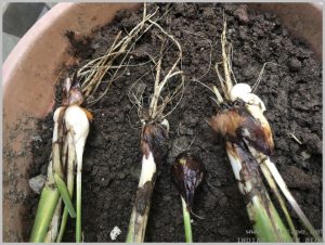 - Since the bulbs could not be divided yet, i simply cleaned them a bit and replanted.