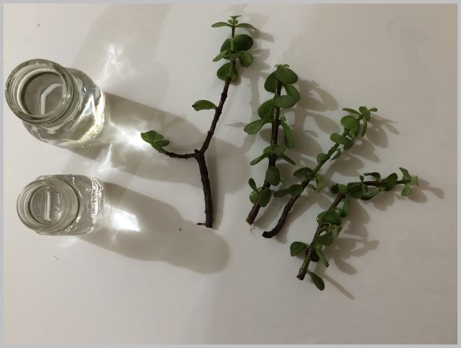 Get some small cuttings. I have some big plants that i snip these off of. Put them in a jar of water & place at any well-lit place indoors. I chose the dining table.