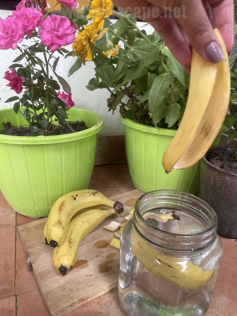 - You can use peels that may be a day old but do not collect them for many days, as they may cause rot and mould. This fertilizer is best made fresh in small quantity.