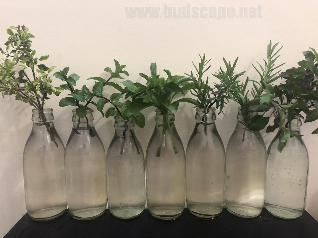 - ROOTING IN WATER – It is actually easier to root herbs in water and you can also see the progress. Just make sure the cutting is fresh and stem not too weak. Change the water every 3 days and do not let any leaves stay under water level.