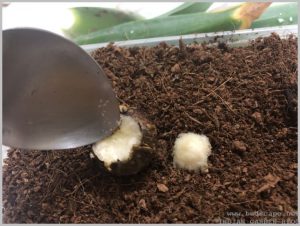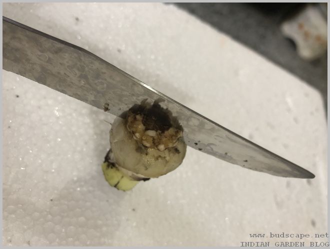 - First is to cut off the basal plate using a knife and scoop out a bit of flesh.