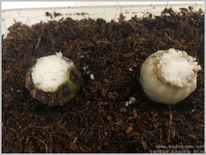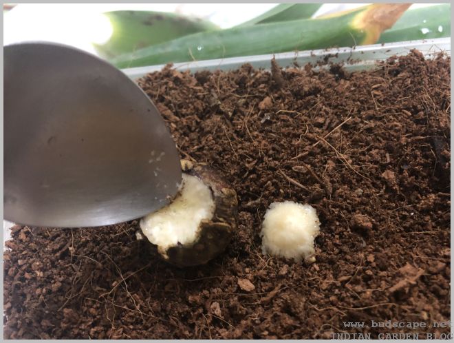 - Now plant the main bulb (that was already multiplying) & the bulb-lets in well-draining soil. Ensure that the soil does not allow water to stand by adding sand.