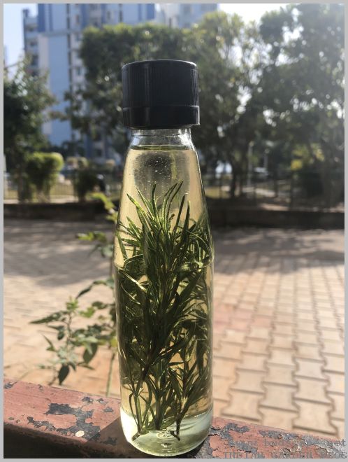 The key point is- more the amount of Rosemary, stronger the infusion. I am only making a massage oil so the bottle is filled loosely.