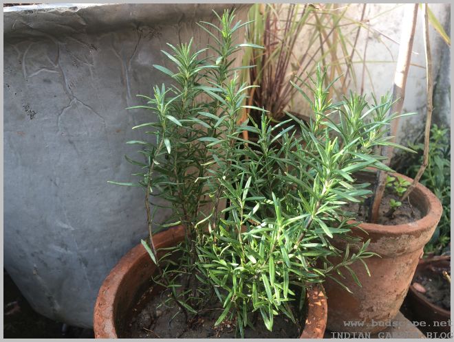 These are the plants growing in a pot. I always grow herbs in cement or terracotta pots.They perform better and there is no plastic toxicity.